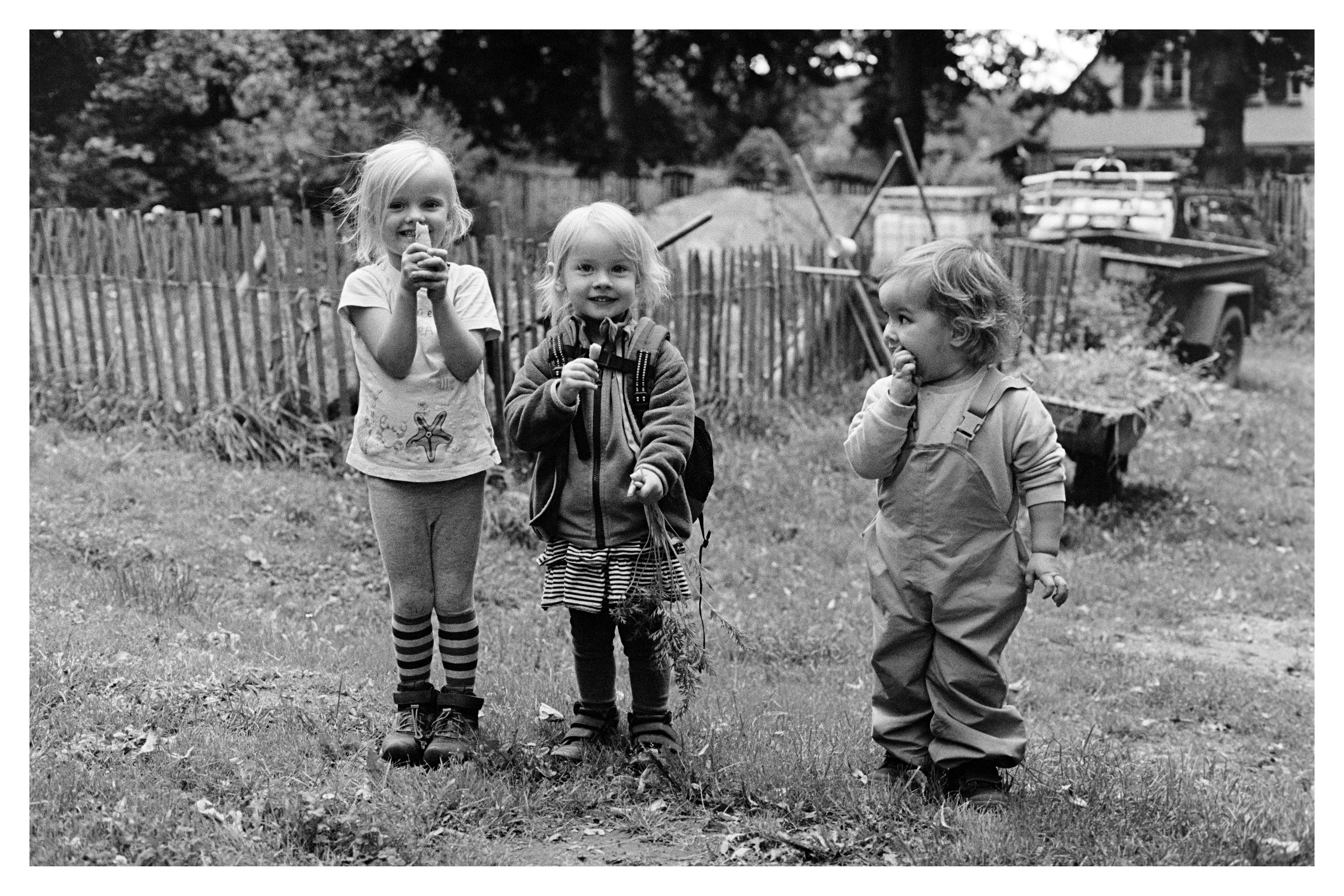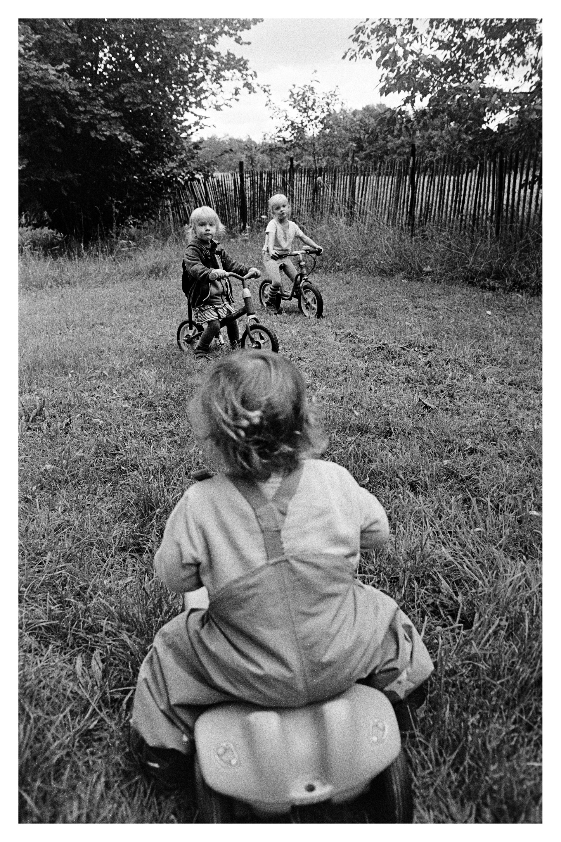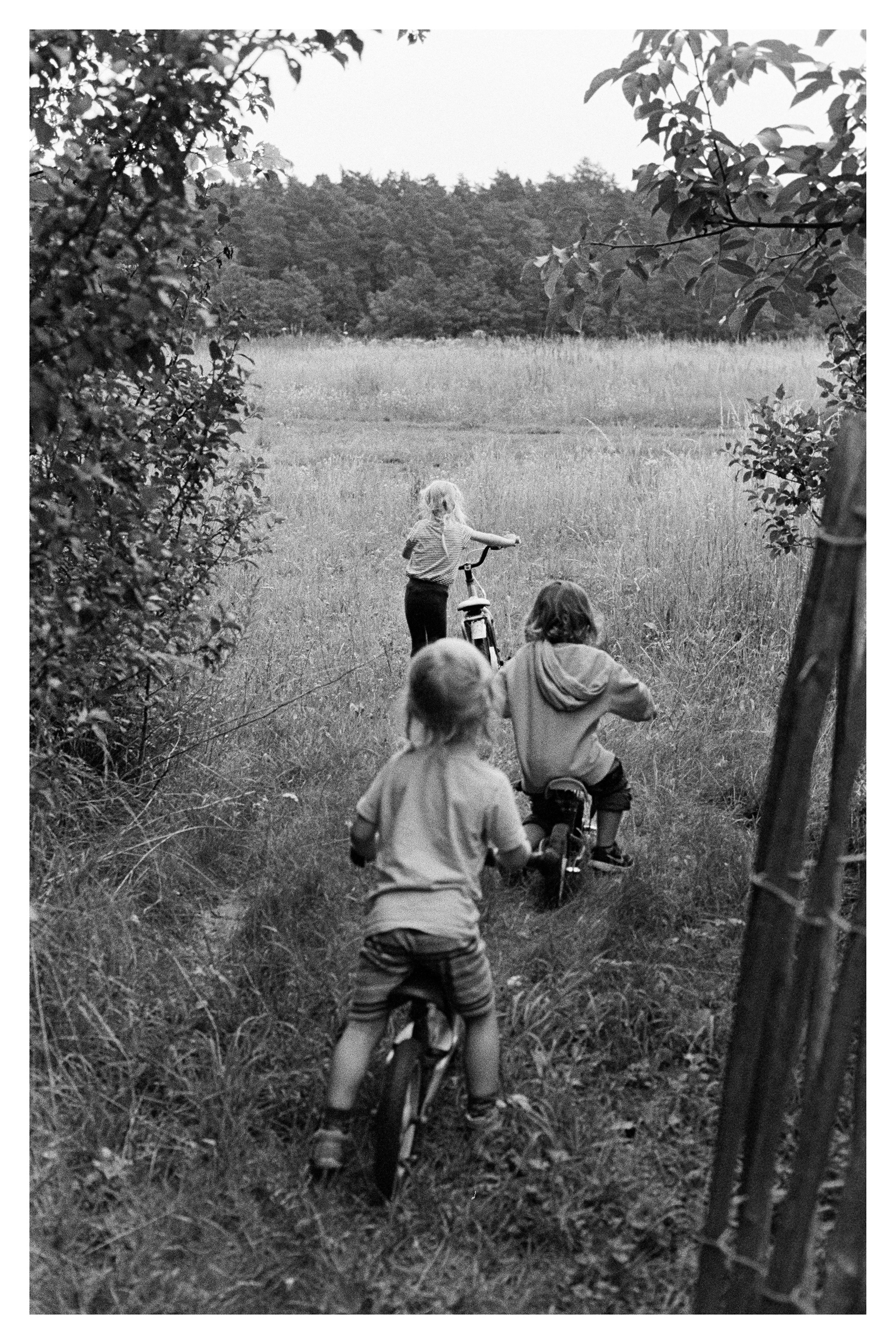 My son has grown up in the city of Berlin, but from an early age, I hoped he would feel at home in nature too. Two months before his second birthday, we began regularly visiting the Märkisch-Oderland region of Brandenburg. There he befriended two neighboring girls, who have spent their childhood surrounded by fields and forests. The photo series depicts the development of their friendship over the next two summers, as they explored the garden and the surrounding meadows together. The portraits of my son on his own each mark a step in his growth. Together, the images capture moments of a shared childhood, and my own wonder in watching my son grow from a tentative toddler into a bold and joyful little boy. Presented in the group exhibition “Kindheit (Childhood)” at Studio Siebzehntausend, Berlin, March–April 2025.
